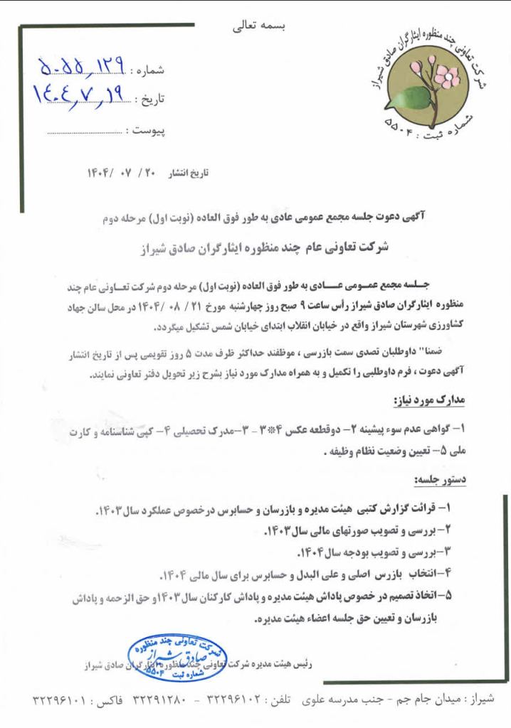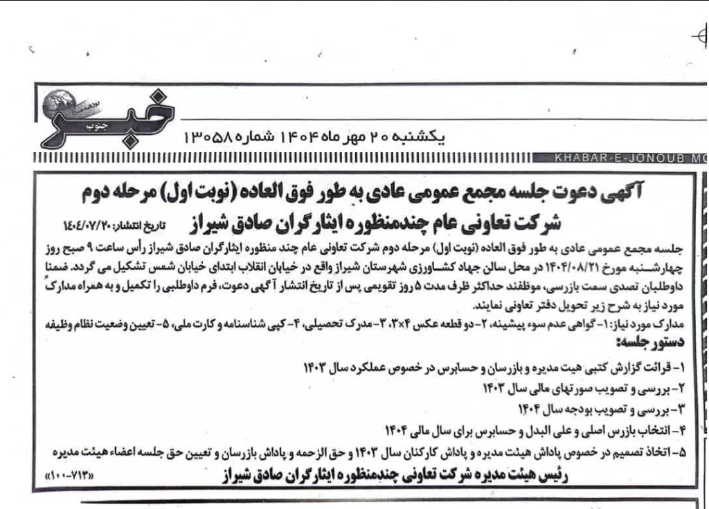 روابط عمومی شرکت تعاونی چند منظوره صادق شیراز